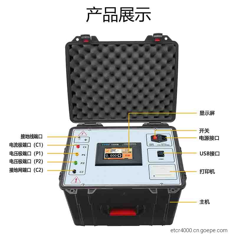 详细信息| 询价留言品牌:ETCR 型号:ETCR3300B 加工定制:是 测试电阻:0.000Ω~2000Ω 测试精度:0.001Ω 外形尺寸:460×380×320 mm ETCR3300B大型地网接地电阻测试仪又称大地网接地阻抗测试仪、异频法接地电阻测试仪、大地网测试仪,用于变电站地网、发电厂、微波站、通讯基站等大型地网接地参数测量。仪器功能强大,可测试工频接地阻抗、接地导通电阻、土壤电阻率、跨步电压、接触电压、电位梯度等工频特性参数。