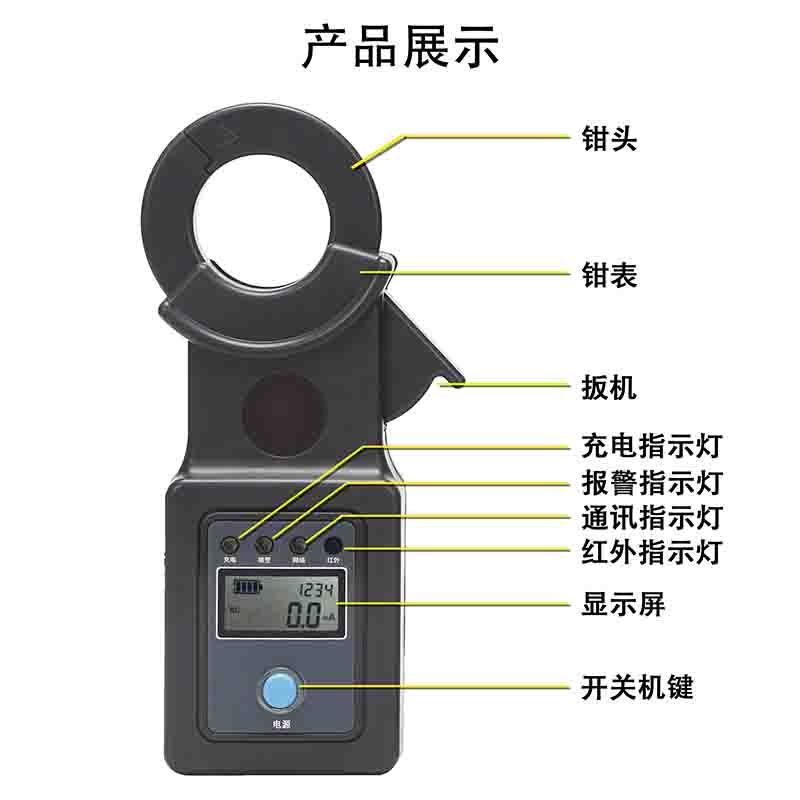 2、监测仪采用钳形结构无需断开被测线路,测试安全快捷。采用双层磁屏蔽及数字集成技术,抗干扰强,精度高。