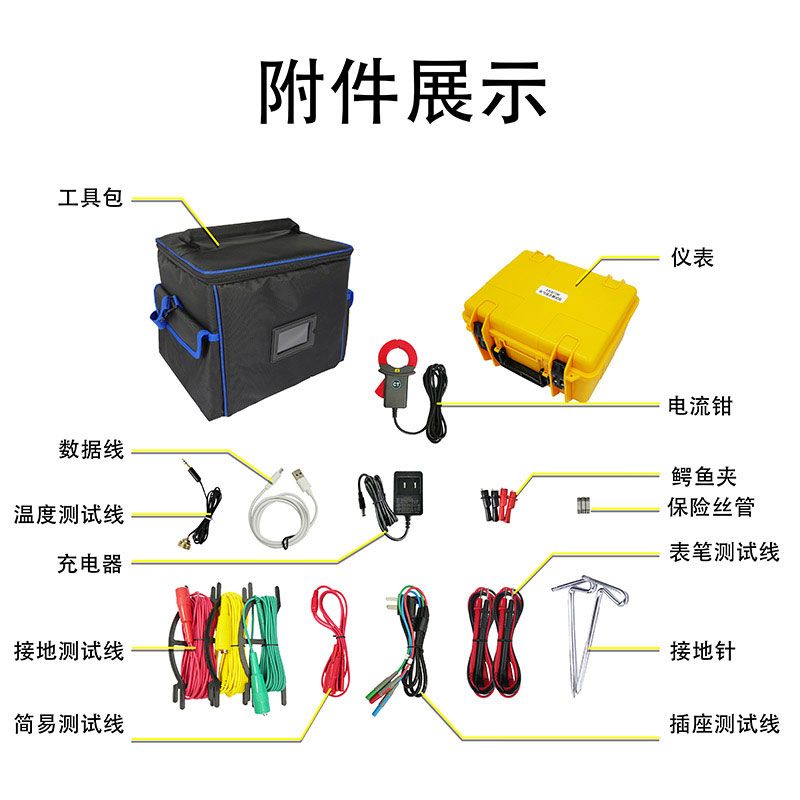 仪表采用7寸触摸彩屏,操作简易。可进行接地电阻测试、绝缘电阻测试、直流电阻测试、RCD漏电保护器测试、电气插座检测、电流有效值测试、交流电压测试、相序测试等参数测量;仪表功能更全,准确度更高,性能稳定,操作方便可靠。